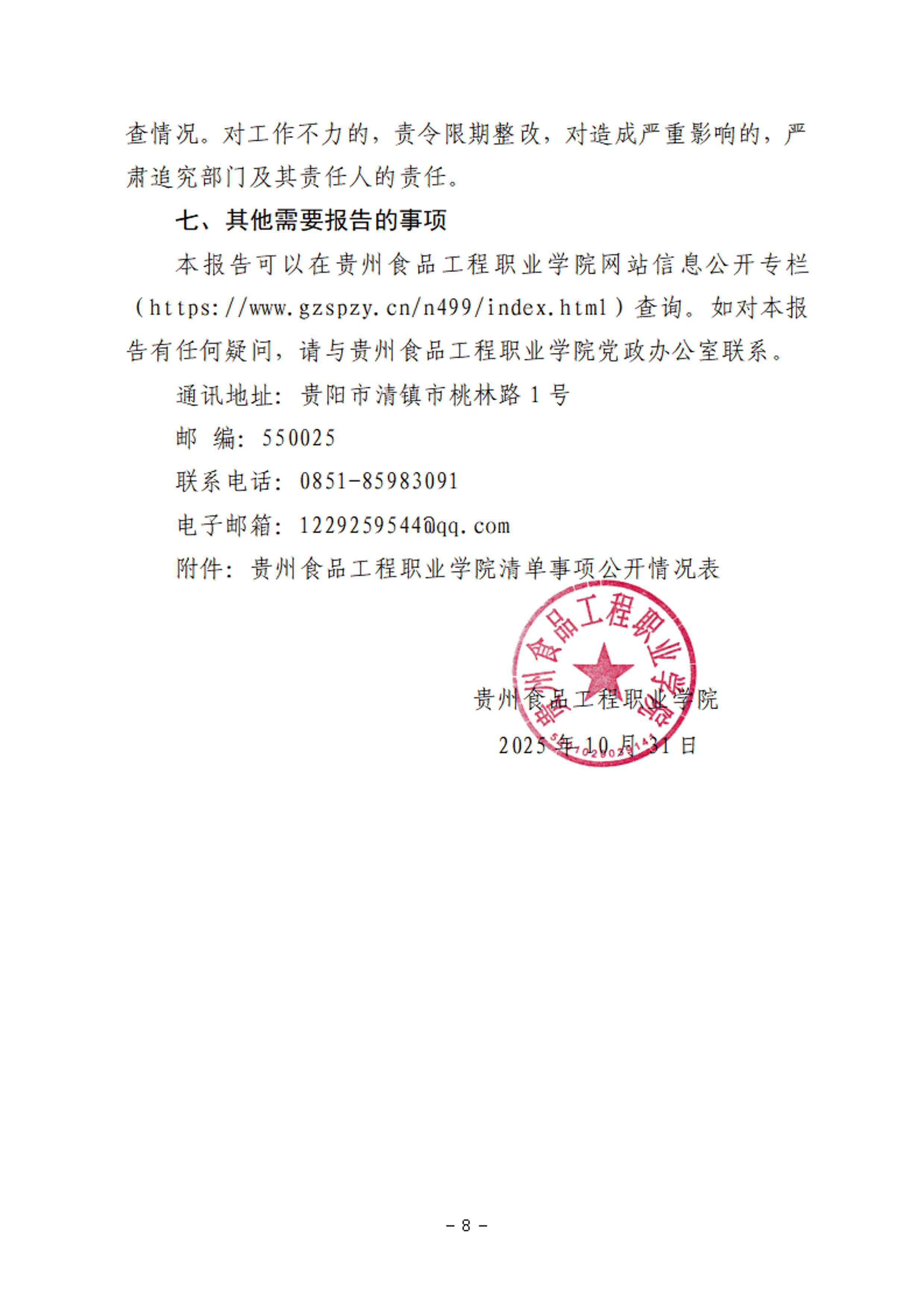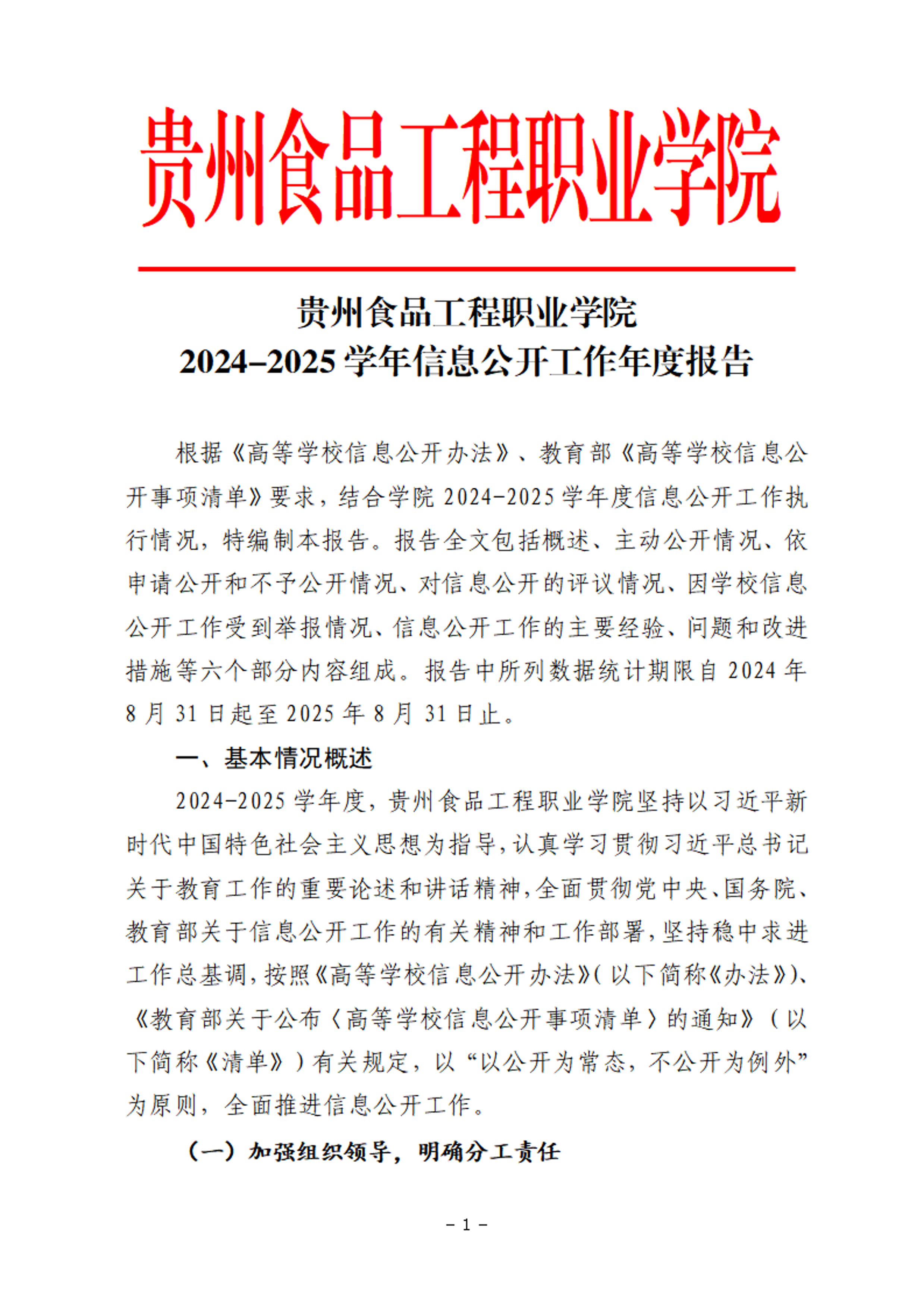 贵州食品工程职业学院2024-2025学年信息公开工作年度报告