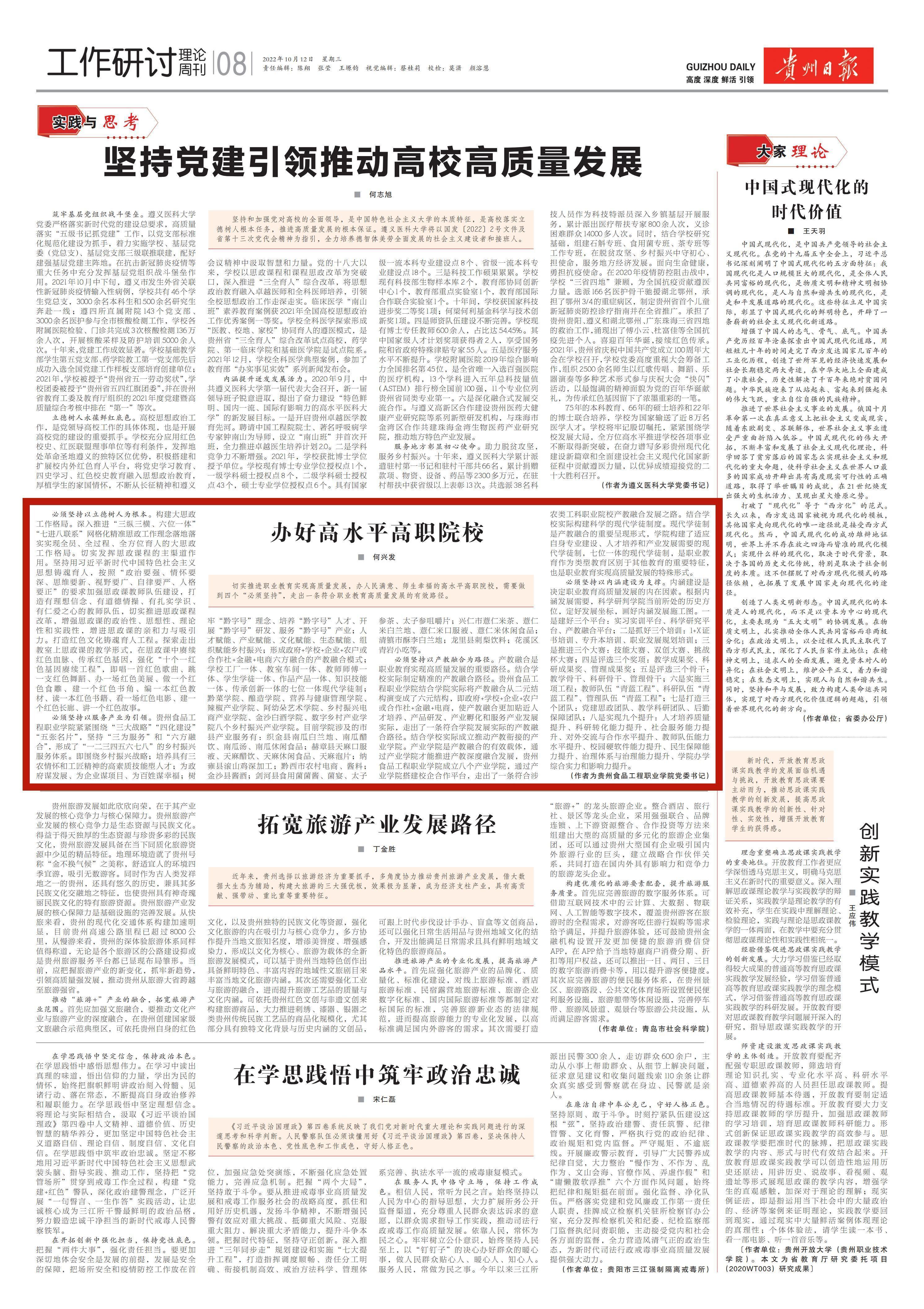 《贵州日报》刊发学院党委书记何兴发理论文章