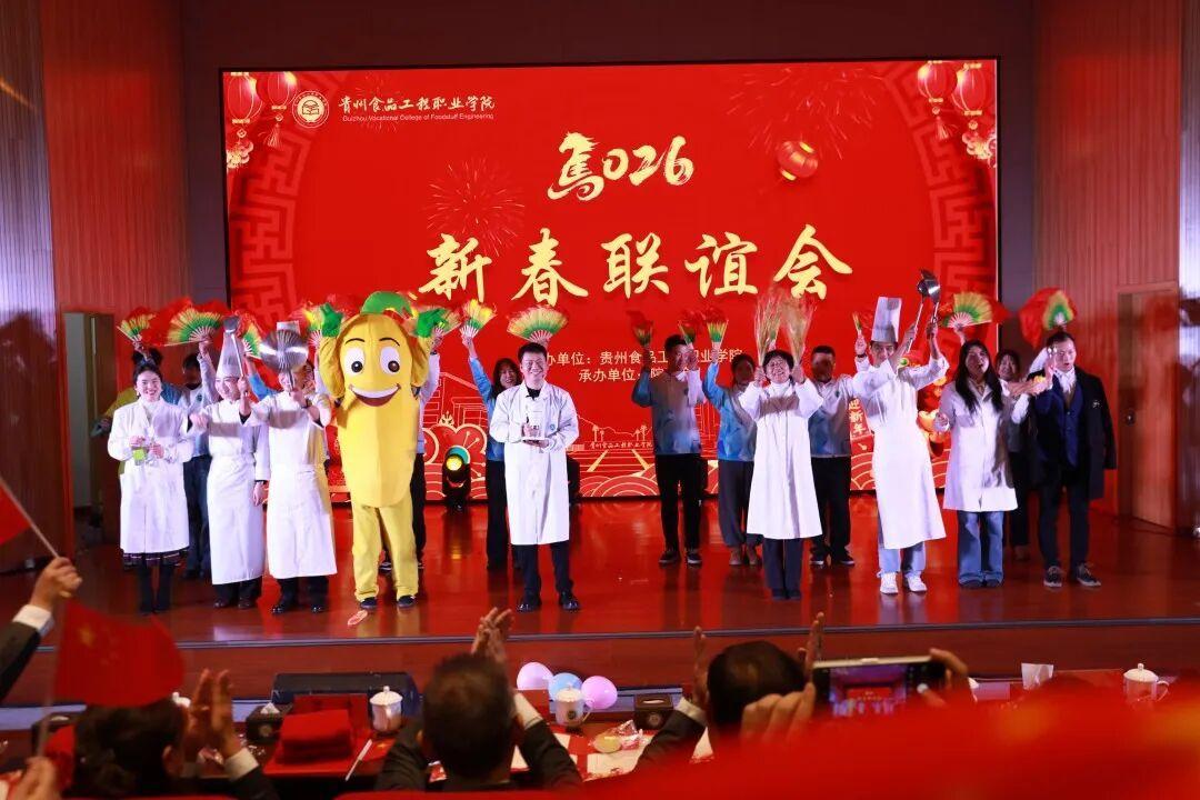 彭光明在致辞中向全体教职工致以最诚挚的感谢和祝福。他说,自2025年7月到任以来,半年间与教职工并肩前行的经历,让他深切感受到食品职院的力量与温度,全体教职工在教学、竞赛、乡村振兴服务及日常岗位上用行动诠释着“坚持”与“担当”。他回顾了2025年学院取得的亮眼成绩,强调这些成果是全院上下共同拼搏的结晶。同时,寄语大家2026年要心往一处想、劲往一处使,延续团结向上的劲头,让学院成为每个人施展才华、安心立业、感受温暖的共同家园。