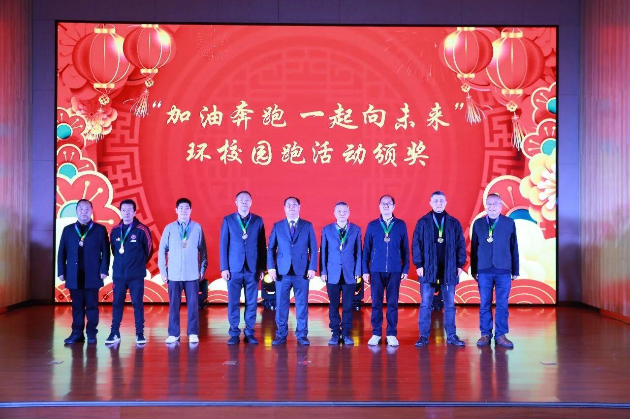 联谊会前,还举行了“加油奔跑,一起向未来”新年环校园跑颁奖仪式。学院党委书记彭光明为男子中年组、女子中年组前八名以及团体前三名颁奖。党委副书记、院长杜平为男子青年组和女子青年组前八名获奖者颁奖。